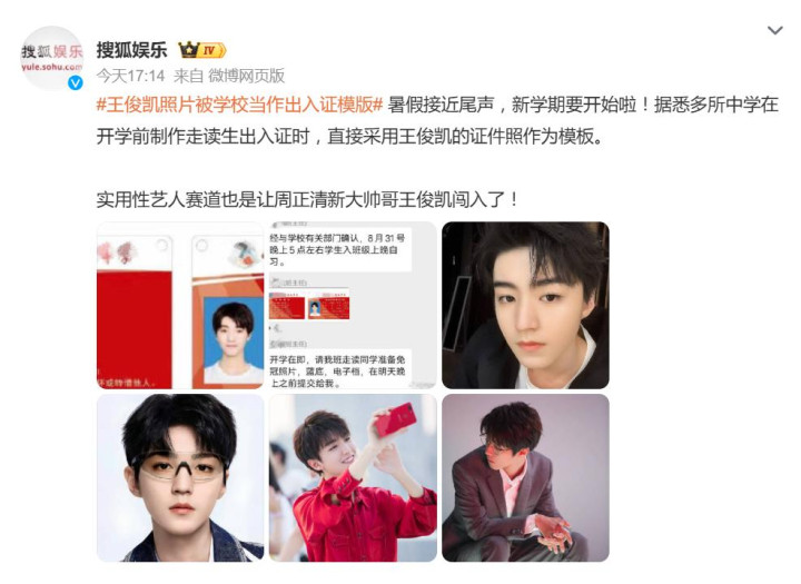 不过,这波“征用”可不只是图个好看。正值开学季证件办理高峰,学校方面显然看中了王俊凯证件照的规范性和实用性——直接采用标准化模板,能大幅减少学生提交不合格照片的概率,提高办证效率。而王俊凯长期以来积累的“学生标杆”形象,更是与校园场景高度契合:从穿校服在食堂吃饭,到北电毕业照出圈,再到早年代表重庆八中参加全国学联会议、主持央视五四晚会……“根正苗红”的公众形象,让他成为校园管理中难得的“正面榜样”。